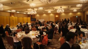 今年度は約120名の方にご参加いただきました。退職された名誉教授や落合法学部長をはじめとする現職の先生方もお越しくださいました。お子様、多数の友人と共に参加くだった方などもおり、昨年を上回る人数となりました。