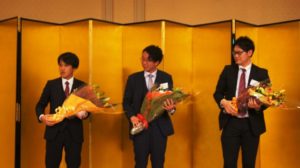 会の中では、今年度司法試験に合格された本学法学部ご出身の方3名に、お祝いの花束と法学部オリジナルのカレッジリングを贈呈いたしました。合格された皆様、おめでとうございます。そして 今後のご活躍を願っております。